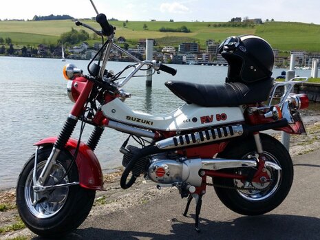 Die Suzuki RV 50 (auch bekannt als VanVan) ist ein klassisches, luftgekühltes Zweitakt-Moped oder Kleinmotorrad, das für seine charakteristischen breiten Ballonreifen und seinen robusten, strandbuggy-ähnlichen Stil bekannt ist. Es wurde 1973 eingeführt und zielte darauf ab, mit Hondas beliebter Monkey Bike-Serie zu konkurrieren.